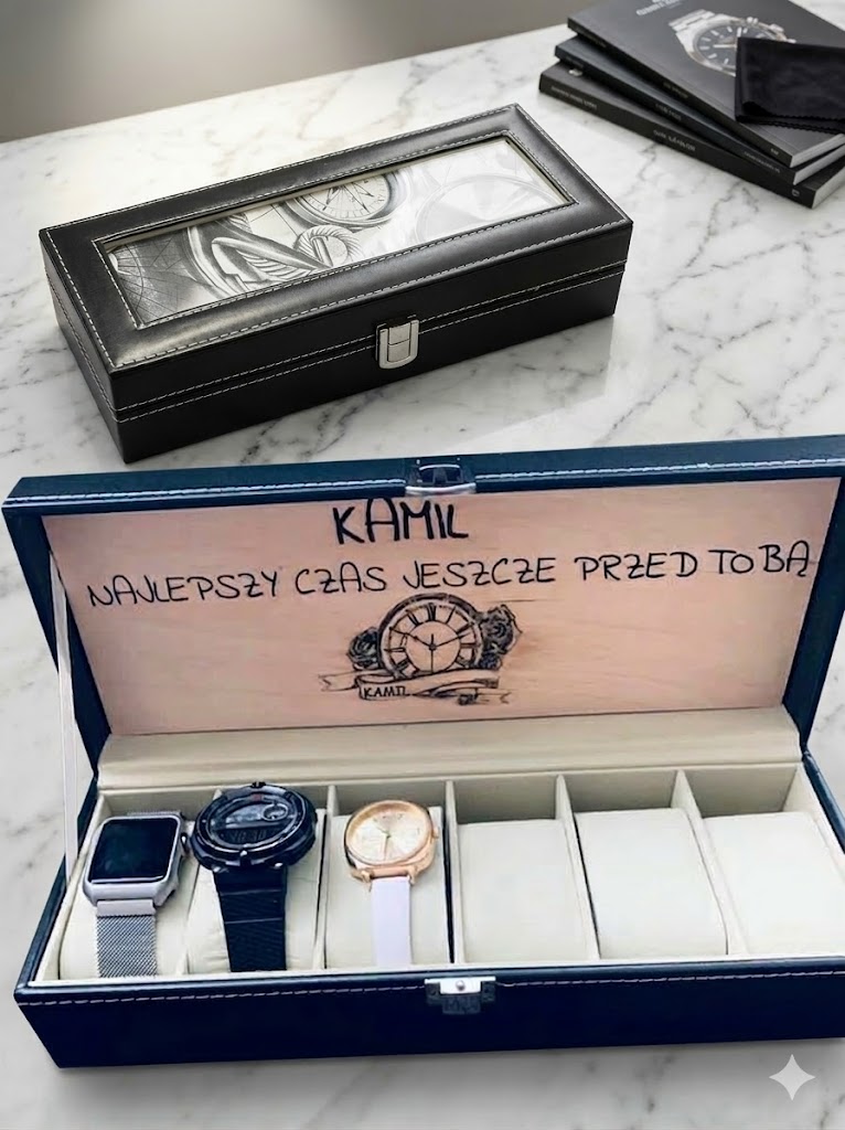 Elegant leather boxes for storing watches and jewellery.